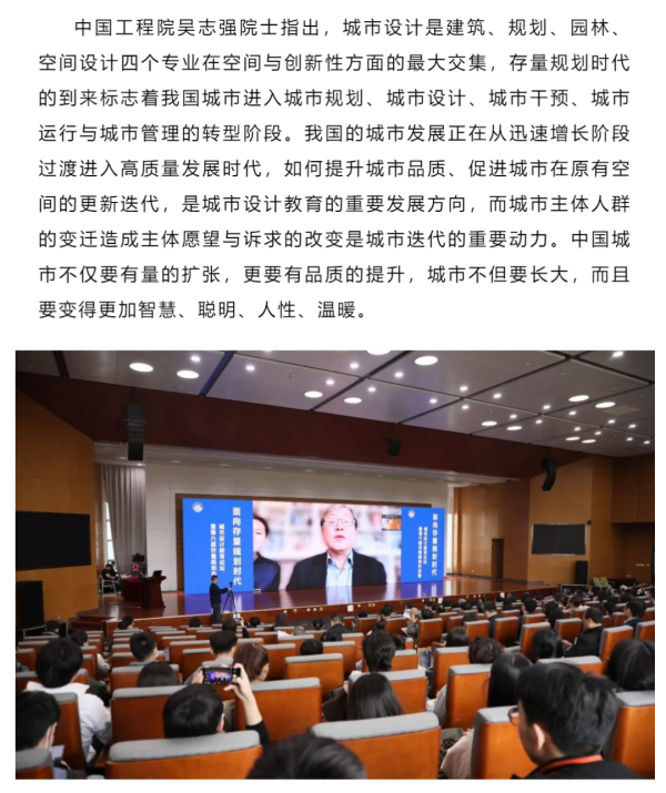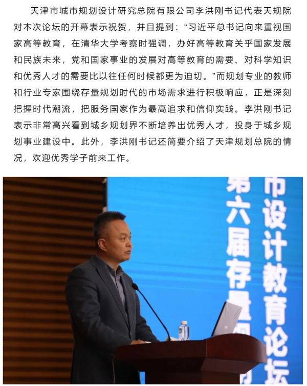 24日上午的专家讲座由天津大学建筑学院副院长曾鹏教授主持,吴志强院士、陈勇书记、宋昆书记、黄晶涛理事长、李洪刚书记、舒平院长、林耕院长进行致辞,各位嘉宾热情回顾了自己的城市规划教育的经历与体悟,提出期许,并预祝论坛圆满成功。随后,业界专家带来了干货满满的讲座,可谓是一场城市设计教育的饕餮盛宴。