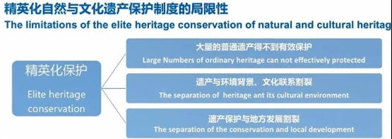 当前我国重视精英化自然与文化遗产的保护制度存在诸多局限性:自上而下的“点”状分类分级保护体系,一方面使得大量普通乡土遗产的得不到有效保护,另一方面使得精英遗产失去深厚的文化土壤。部分遗产地保护与地方发展割裂,呈现旅游的同质化与恶性竞争。
