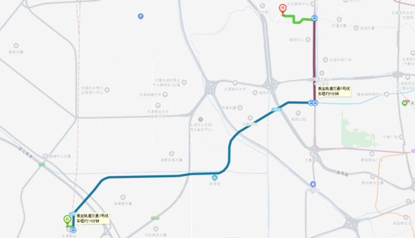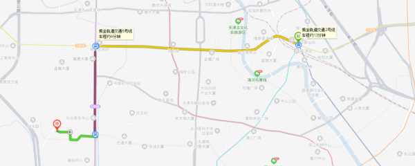 公共交通:轨道交通2号线(曹庄方向:天津站-长虹公园站)→轨道交通6号线(梅林路方向:长虹公园站-鞍山西道站B出口)→步行或共享单车约1.5km。乘坐出租车约8.5公里,耗时25分钟。