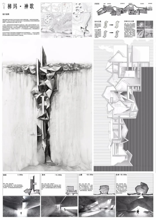 本次竞赛的主题为“自然地景的建筑”。出题人王维仁教授意在唤醒同学们对于场地的关注,在地景建筑设计中建构自然与生态、生产与人居的和谐关系。评委从三个维度进行评选,作品价值观是否明确,能否表达出对自然、城市的态度,做到尊重自然,对环境有贡献;作品是否有社会功能方面的意义,有策略性的思考,而非单纯地在场地中“加入”建筑;作品对空间、形式、材料、结构以及图纸表达等方面的全面处理等。