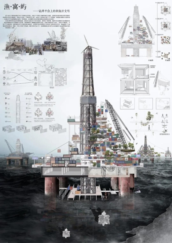 《建筑师》杂志·2020“天作奖”国际大学生建筑设计竞赛结果于2020年10月27日正式公布,一等奖1份,二等奖1份(空缺1份),三等奖5份,佳作奖27份。参赛作品《飞吧,弥敦道》(学生:王旨选、张慧楠、吕梦迪;指导教师:辛善超)获得二等奖;《渔·寓·屿——钻井平台的新海洋文明》(学生:杨凯帆、杨正楠、王嘉颖;指导教师:宋祎琳、孙德龙),《池“盐”新语》(学生:丁晴、岳开云、李志伟;指导教师:许蓁)获得三等奖。天津大学建筑学院共有5份作品获奖,有三份来自研究生,两份来自本科生,入围数量于全国高校中位列第一名,一、二、三等奖的指导教师,除内工大的王老师外,均有天大背景。