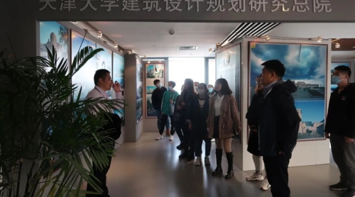 活动开始,在风景园林支部书记陈书记的带领下,支部成员对天大设计院的展厅进行了走访参观。参观过程中,陈书记针对河北联合大学新校区规划与建筑设计、北京市北海及团城保护规划等项目进行了详细的讲解。