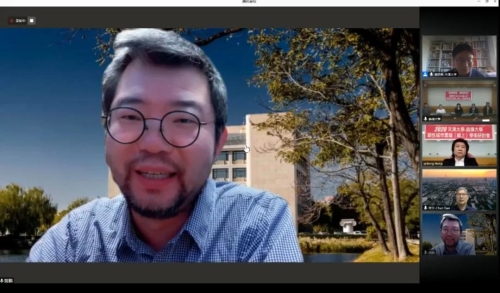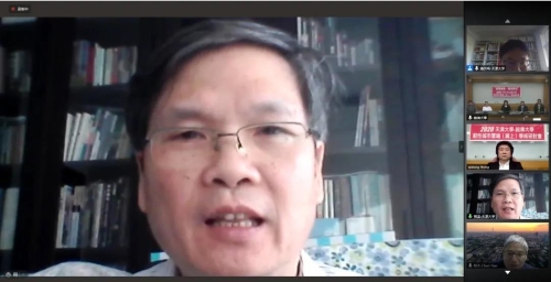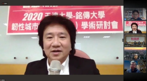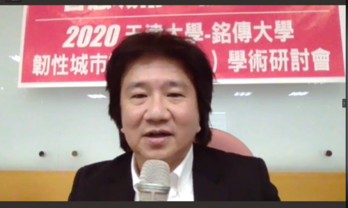 铭传大学设计学院院长、都市规划与防灾学系洪启东教授代表协办单位铭传大学设计学院致辞,介绍了铭传大学设计学院韧性城市方向相关研究主题与进展,指出疫情期间两岸的防疫工作与学术交流研讨活动不会间断,特别感谢本次活动的筹办方为两岸学者提供学术交流的平台与机会,希望本次会议顺利举办,并对2021年的线下交流研讨会提出展望与期盼。