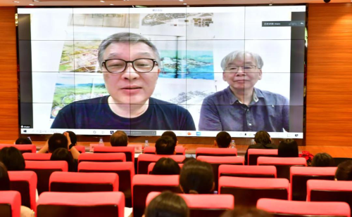 淡江大学建筑系系主任陈珍诚通过远程会议进行线上发言,他说道未来台湾将更多的推动与大陆高校的交流,希望参加此次联合设计的学生可以做出优秀设计。