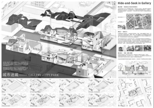 2020东南·中国建筑新人赛最终决赛通过线上直播平台与线下评审会相结合的方式展开,并于9月27日13时在东南大学圆满结束。此前,在7月19日结束的初赛评比中,天津大学建筑学院共有13份初赛作品进入“top100”入围决赛,入围数量于全国高校中位列第一名;其中参赛作品《城市迷藏——Gallery+City Park》(学生:任英辉;指导教师:辛善超)在16强决赛答辩中胜出,获得2020中国建筑新人赛最高奖。