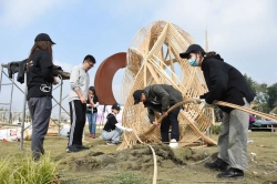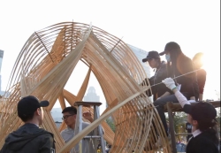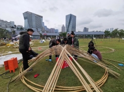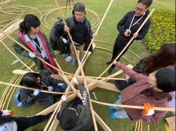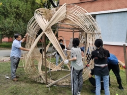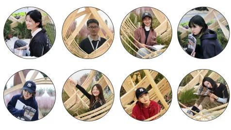 整个建造过程包括材料分类、竹片连接、主体结构搭建、节点固定以及花境营建等各项工作,历时三天半,时间颇为紧张。团队成员充分发挥主观能动性,积极解决竹构形态美感、结构稳定性、节点连接方式等主要问题,最终按时保质完成搭建,获得一致好评!