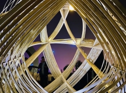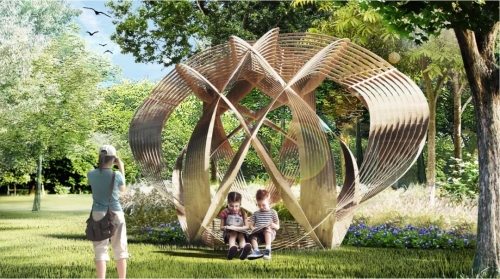 “画栋朝飞南浦云,珠帘暮卷西山雨”。方案根据“珠帘幕卷”的理念展开设计,希望花竹相融,帘幕载卷。竹片交织形成竹帘,竹帘旋转生成帘幕,帘幕叠加构成画卷。以纯粹的编织形式建造竹构,由简入繁,亦实亦虚,境融竹中,形成亦梦亦幻的“帘幕卷”秘境花园。