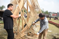 此次花园建造节的25个竹构花园作品分别来自第三届“北林国际花园建造节”设计竞赛的17组获奖作品和8个川渝本土高校邀请团队方案。竞赛要求在为期3天半的时间内现场搭建25个有神秘感的竹构花园,天津大学建筑学院团队位于14号场地。共同参加建造节的还有来自北京林业大学、清华大学、重庆大学、华南理工大学、上海交通大学等20所大学的优秀团队。