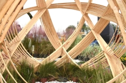 “帘幕卷”始终注重体现竹性及相应的建构美学,力争在符合力学逻辑与美学原理基础上,使构筑物的结构、表皮、空间、形态一体化,同时保证竹构肌理富有韵律,节点衔接巧妙。在团队成员的坚持和努力下,一个竹构和花境相互交融的花园景观得以展现。