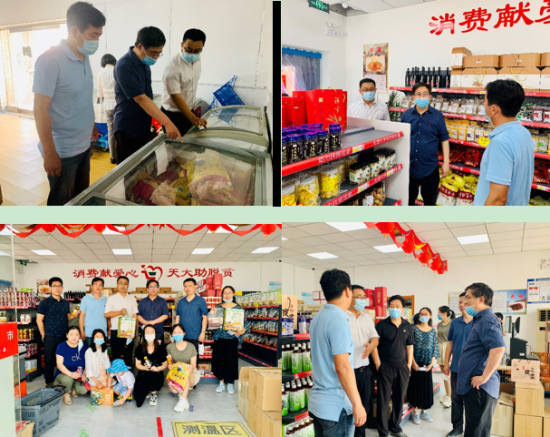 6月2日上午,学院党委书记宋昆带队,副院长冯刚、副书记王鑫以及学院机关党支部部分同志一同到天津大学扶贫超市对接调研,集中消费。宋昆一行与后保部副部长李强就扶贫超市产品种类、具体价格、销售状况进行了解咨询,详细询问扶贫超市特色商品的供货时间、代金券的使用方法以及购买产品的对接机制,以进一步助力消费扶贫工作更好开展,全方位做好助力农民脱贫增收工作。结合“党员亮身份、支部亮旗帜”活动号召,宋昆书记带头,个人购买2600余元扶贫产品,真正把“扶一把老百姓”变成实际行动。