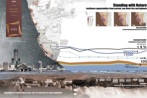 美国时间2020年9月4日,美国风景园林协会(American Society of Landscape Architect, ASLA)公布2020年度学生竞赛获奖作品。天津大学建筑学院学生作品《与自然共生:来自洋流、海平面上升和台风的韧性机遇》(Standing with Nature: resilience opportunities from current, sea-level rise and typhoon)获得分析规划荣誉奖。这是天津大学有史以来获得的风景园林专业学生国际竞赛的最高奖项。
