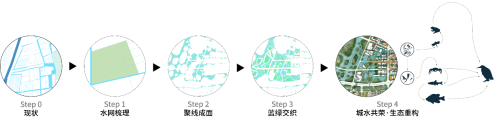 生态水城:以龙凤河为基底,结合起步区现状“河-塘-沟-渠”搭建蓝绿网络,打造多元亲水公共空间,营造生态水城