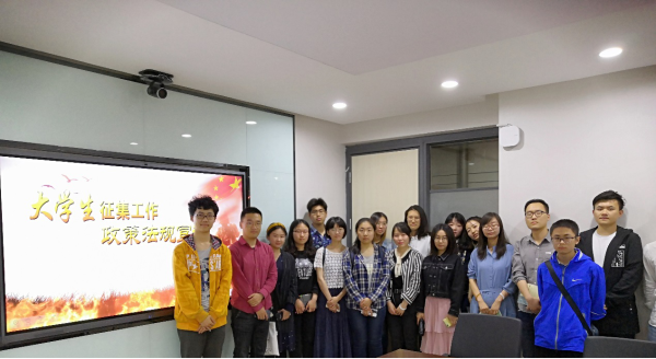 2019年5月7日,在建筑学院第二会议室,学院辅导员赵乾琨向全体学生党支部书记宣讲大学生征兵政策法规。赵乾琨分别从兵役制度法规规定、大学生入伍优待政策、退役大学生士兵安置就业政策、参军入伍政治经济待遇等四个方面介绍大学生征集工作的相关信息,并动员学生党员,通过党支部组织生活的形式,了解大学生征兵政策规定,熟悉征兵工作程序方法,积极宣传入伍政策。在场同学积极发言交流,纷纷表示愿意以征兵宣传活动月为契机,充分利用建筑学院退役大学生士兵优势资源,为大学生征兵政策法规宣传工作贡献力量。