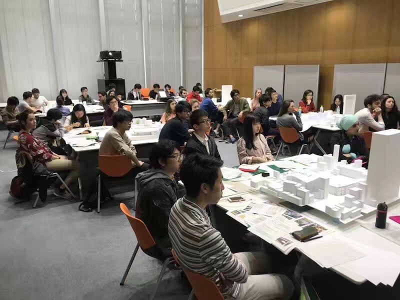 4月23日上午工作坊正式开幕。今年工作坊主题为“Regeneration of Closed School Site as Cultural Crossing Place in City Center of Nagoya”。即毗邻名古屋火车站、位于城市中心区的废弃小学改造。共同指导的教师还有日本小松尚老师和法国Boris Weliachew老师、Marc Tabet老师。23日下午在项目基地周边环境及基地内废弃小学校进行了实地调研后,同学们返回学校开始了小组工作。来自三所高校的54名本科及研究生(天津大学15名同学,名古屋大学22名同学,瓦尔德塞纳国立高等建筑学院17名同学)混编成7个小组,共同讨论改造方案,工作气氛积极融洽。