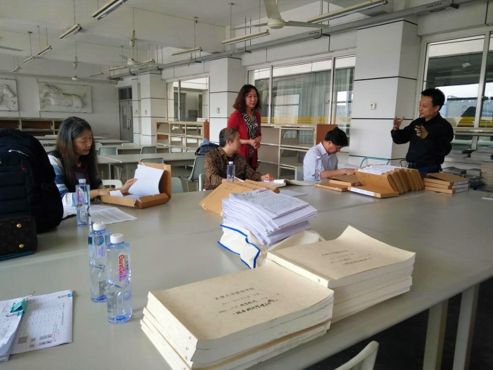 专家听完汇报后,一起到建筑学院资料室查阅了教学支撑材料。检查后,对于建筑学院的教学支撑材料整体比较满意,也提出了改进措施。例如,完善培养方案的签字部分,电子版作业文件名的规范要求等。