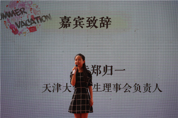 首先,天津大学学生理事会负责人黄郑归一主席上台讲话,对此次“夏日季—文艺文化交流节”活动的举办给予了高度的评价,希望我们各个学院的各个青年都能借此平台发扬自己的青春特色。
