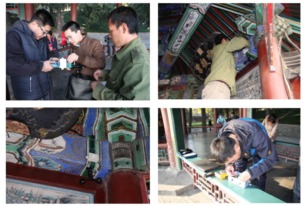 修缮是延续文物建筑寿命的手段,通过科学监测,发现问题,找出危害因素,提前采取措施,避免文物建筑遭受破坏。在这一思路下,天津大学逐渐形成了一支由建筑历史、建筑技术、工程测量、地震工程、岩土、材料、计算机图形图像、光纤传感、低空遥感等多学科合作的科研团队,开展了诸如德和园大戏楼、石舫、清外务部公所变形监测,德和园大戏楼振动监测,长廊彩画监测,颐和园微环境监测、水土流失监测,为促进颐和园从抢救性保护逐步向预防性保护转变做出了有益尝试。