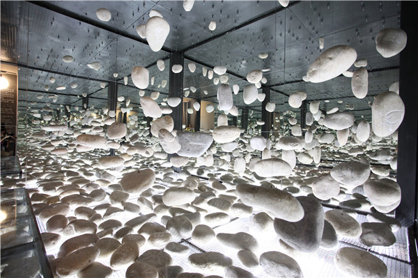 《当代中的非当代——建筑师设计展》由13位建筑师的11个作品构成,作为设计文化的觉察者和引导者,这些作品凝结了他们立足不同视角、不同时空维度的思考与创作。其中《霾-天空》的作者宋昆、胡子楠用上万个口罩将房间四壁覆盖住,用震撼的视觉效果,引发人们对雾霾的深思;《玛尼堆中》作者张曙辉将象征永恒的玛尼堆立体化,重构了藏族民间艺术家的杰作。