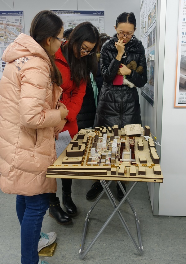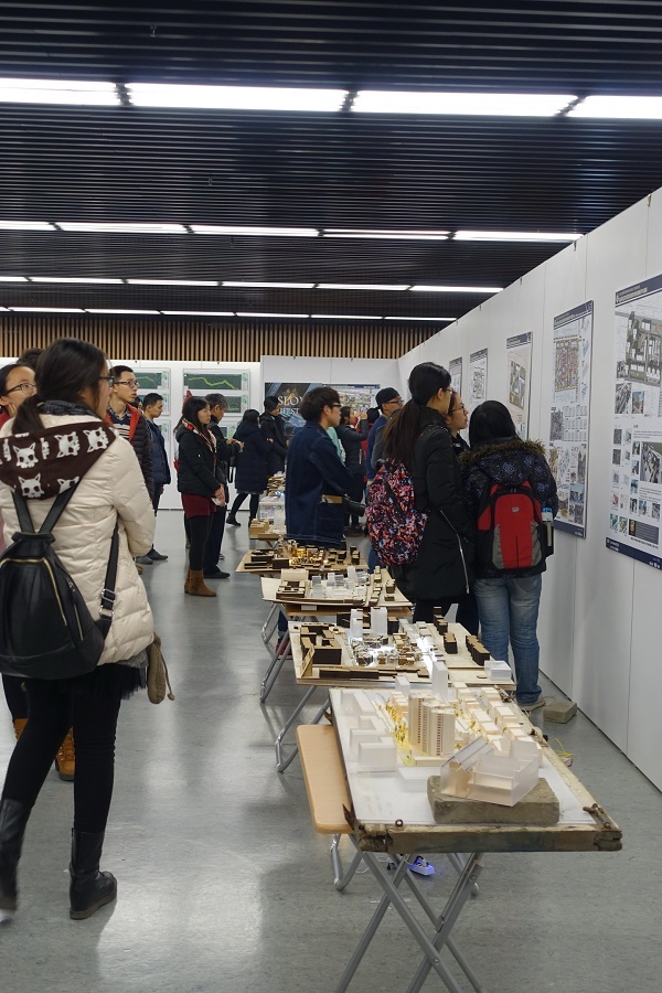 2016年1月9日至10日,天津大学建筑学院城乡规划三年级组在天津市规划展览馆进行了一次别开生面的作业展评。这次的展览对规划学生来讲是一个新的挑战,与以往不同,这次展览将面向更多人群,打分方式也更为复杂:来参观的各路人马都可以为作品打分,老师还特别邀请五位评委假装观众混在人群中,同学们需要对所有感兴趣的参观者介绍自己方案,回答他们提出的问题。