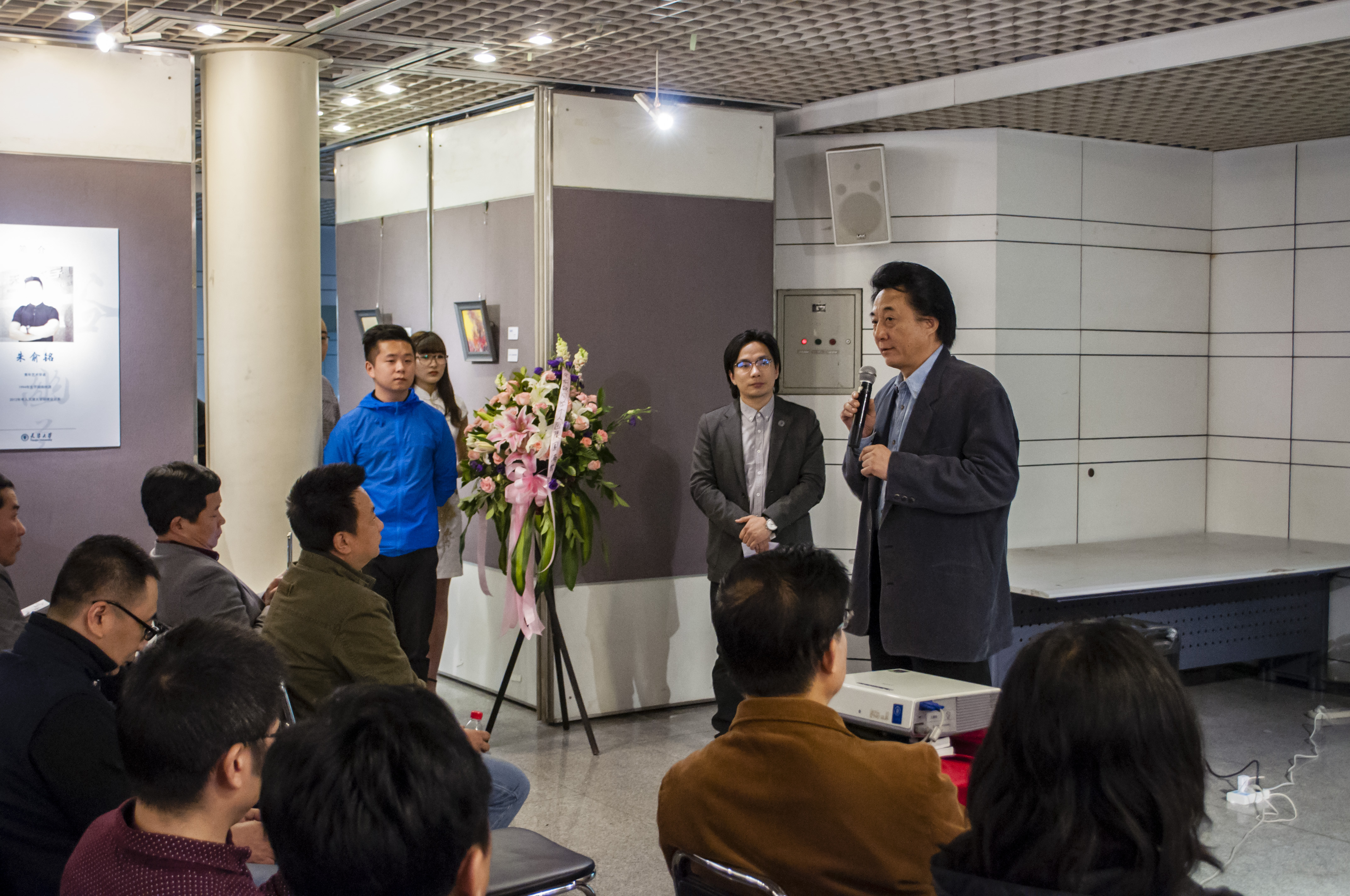 开幕仪式上,环境设计系主任董雅教授首先为开展仪式致辞,朱俞铭同学的绘画作品展,不仅是环境设计系建系以来第一个学生个展,更是建筑学院历史上第一个学生个展,意义非凡,早已超越展览本身,一是体现了“艺术无界,大道归一”的艺术理念,二是朱俞铭同学自幼学画,以孜孜不倦的绘画追求,勤奋努力的艺术精神值得敬佩。董雅先生作为本次展览的序作者,对朱俞铭同学本人及其作品表示了高度赞扬,同时也希望天大建筑能继续涌现更多人才,能有更多同学在艺术领域取得成功。随后,朱俞铭的父亲代表全家,向学校领导、老师、同学、校外企业家等表示了由衷的感谢。朱俞铭在开展仪式中谈到今天是梦想成真的一天,感谢父母的培养、学校的教育、领导老师的帮助、同学的支持。在追逐梦想的路上,自己也有过痛苦,有过孤独,信仰的力量伴他渡过难关,说至动情处,朱俞铭不经凝噎。