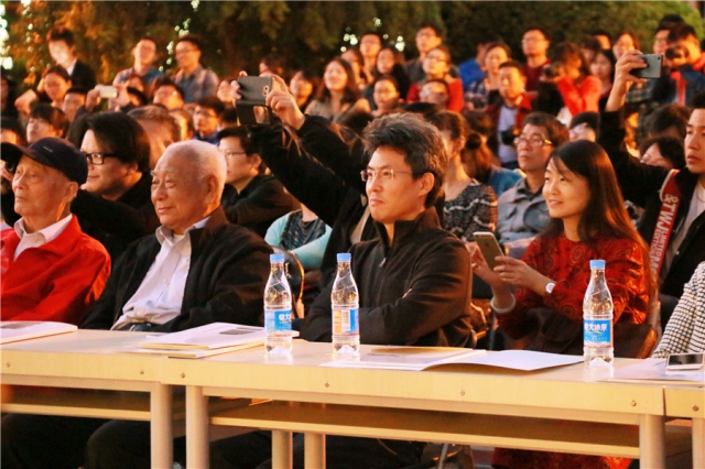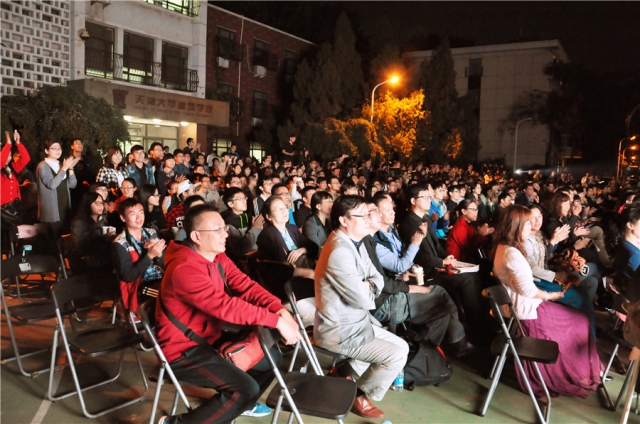 时光荏苒。当年年轻的教师,如今已是满头白发的老先生;而当年青涩的我们,则接过了老先生的接力棒,完成着一个又一个天大人的梦想。由学生、校友、教师以及老先生共同表演的“四世同堂”的音乐诗会《时间都去哪儿了》,感动了在场的每一个人,优美的旋律伴随浓情款款的诵读声,怀着深切的情感让人感怀时间的流逝,更留恋难以忘怀的青葱岁月,感人且振奋的朗诵将整场晚会推向了高潮。在悠远的古筝伴奏下,刘毓基先生,张清老师,以及覃力校友共同为母校120年校庆书写了12个大字,“修古好学”、“实事求是”、“筑情北洋”将晚会推到了尾声。最后,文艺晚会在全体观众共同高唱的《同一首歌》中圆满落幕。