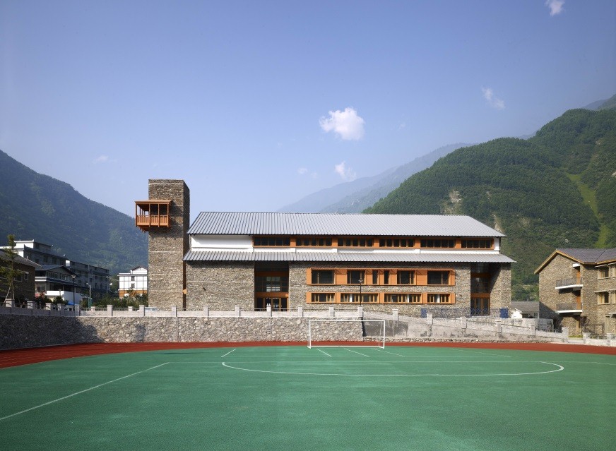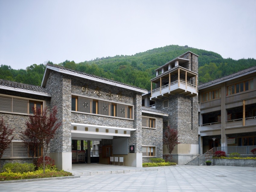 获奖项目耿达一贯制学校、卧龙镇中心小学均由香港特区政府投资援建,2011年8月竣工。校园规划设计及建造基于当地风土条件,借鉴卧龙传统民居,创造性地利用震区碎石砌筑片石外墙,挑战性地将橡胶支座隔震技术应用于坡地建筑,以确保重生后的学校建筑能够更好的传承地域文化遗产和保障人民生命安全。