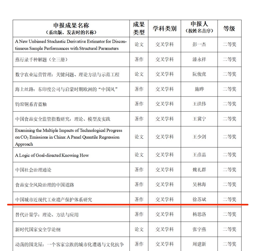 日前,教育部发布《关于第九届高等学校科学研究优秀成果奖(人文社会科学)评选结果的公示》,《中国城市近现代工业遗产保护体系研究》(5卷)荣获二等奖(著作类,交叉学科)。该著作由天津大学建筑学院徐苏斌教授担任丛书主编、中国政府友谊奖获奖者青木信夫教授等共同编著,以天津大学中国文化遗产保护国际研究中心(CTTI 智库)师生为核心完成的。教育部优秀成果奖是中国人文社科类科研最高等级奖项。徐苏斌教授2013年曾经获得第六届高等学校科学研究优秀成果奖一等奖,这是第二次获奖。