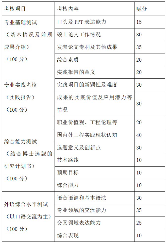 学院将组织专家组对申请材料初审合格的申请人进行综合考核。考核项目包括专业基础测试、专业实践考核、综合能力测试和外语综合水平测试四部分内容。各科成绩满分为100分。总成绩折合为满分100分。计算公式:总成绩=外语综合水平测试成绩*30%+专业综合考核成绩(专业基础测试成绩+专业实践考核成绩+综合能力测试成绩)/3*70%。
