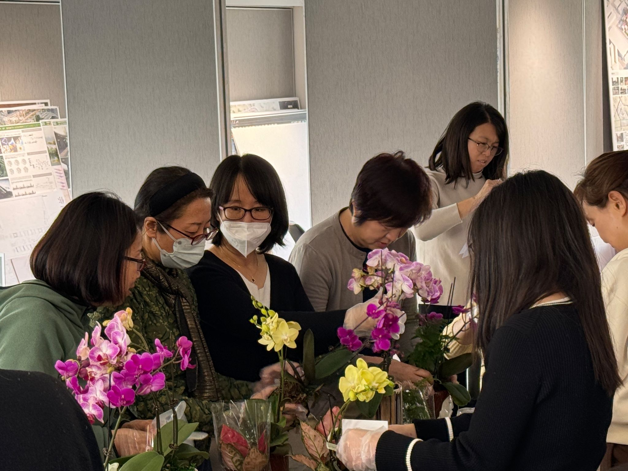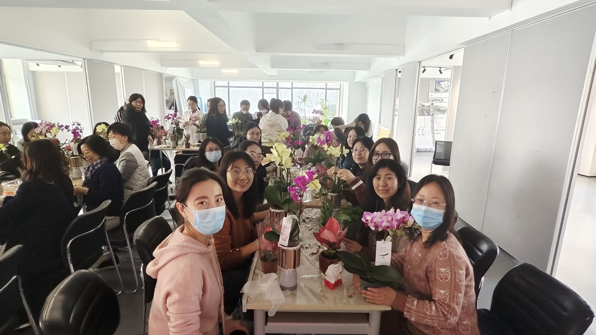 活动现场,工会邀请了花艺师为大家讲解蝴蝶兰日常栽培、养护、繁殖以及与其他植物组合栽培技巧,并为大家准备了斑花、金蝶、金公主等不同品类供大家挑选搭配。在花艺师的指导下,一件件春意盎然、清新淡雅的蝴蝶兰盆景就制作出来了。大家说着、笑着,脸上都洋溢着浪漫幸福的笑容。老师们在感受美、欣赏美、创造美的过程中愉悦了身心、舒缓了压力,展现了建筑学院教职工积极向上的精神面貌和靓丽的风采。