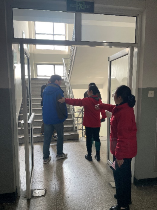 随着保卫处防火科老师拉响警报,消防应急疏散演练正式开始。学院办公室老师同物业人员迅速到位,从建筑系馆六楼逐层引导师生按预先规划的最佳疏散路线迅速、有序地撤离教学楼,到达疏散集合点进行汇合。各负责人清点人数,确保所有老师、学生安全撤离。以最短的时间,完成了本次消防应急疏散演练。