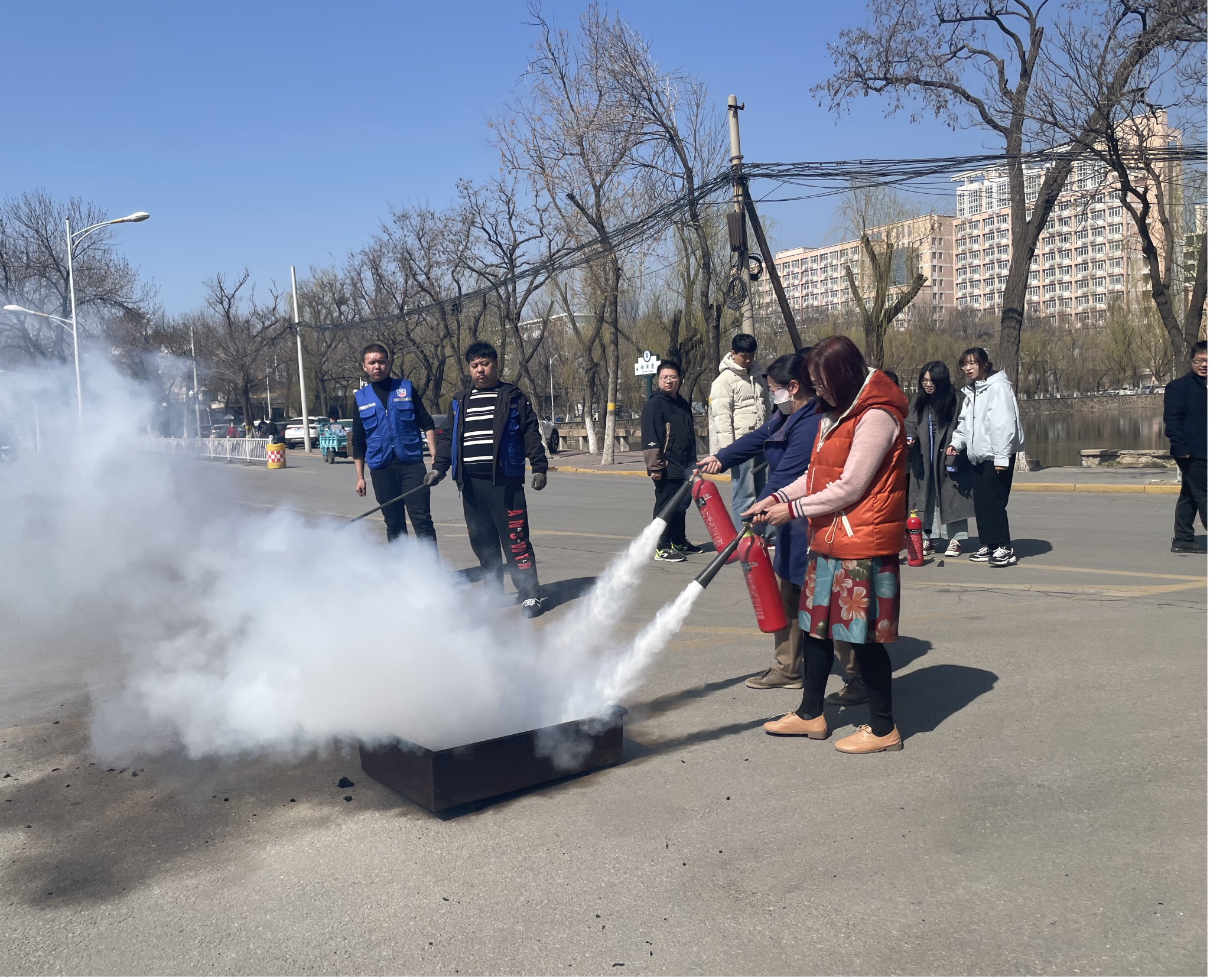 通过现场教学,建筑学院师生及物业工作人员轮番上阵进行实操,亲自感受体会动作要领,经过现场实操对消防器材的使用方法有了更加直观的认识。