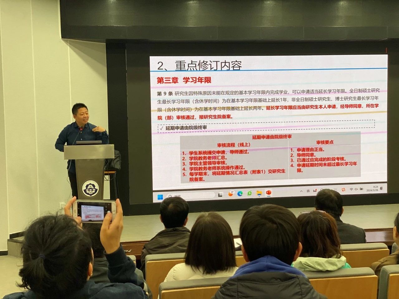 随后张春彦向大家宣讲了《天津大学研究生学籍管理办法》修订重点。