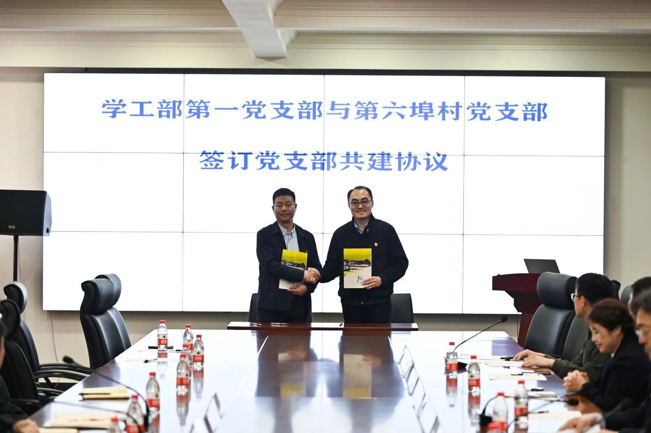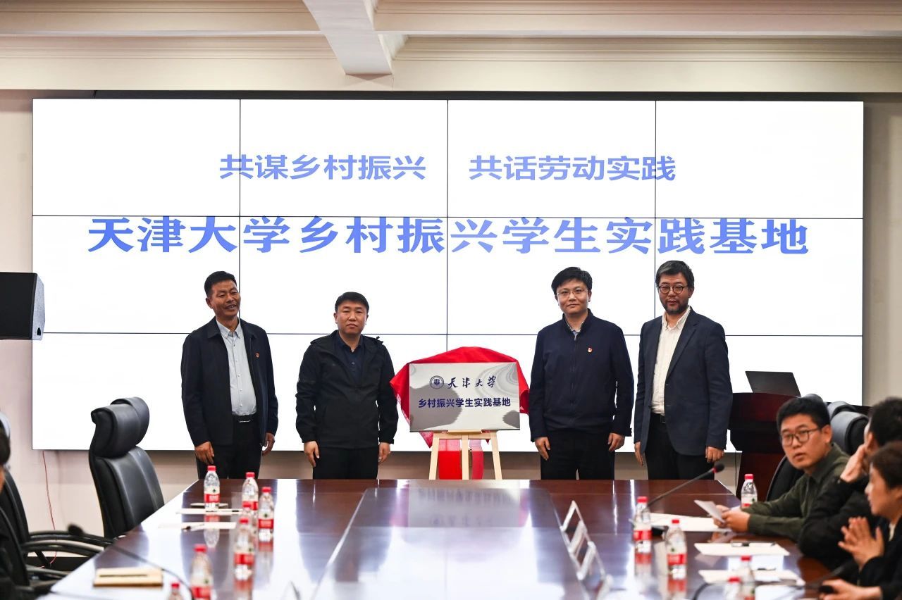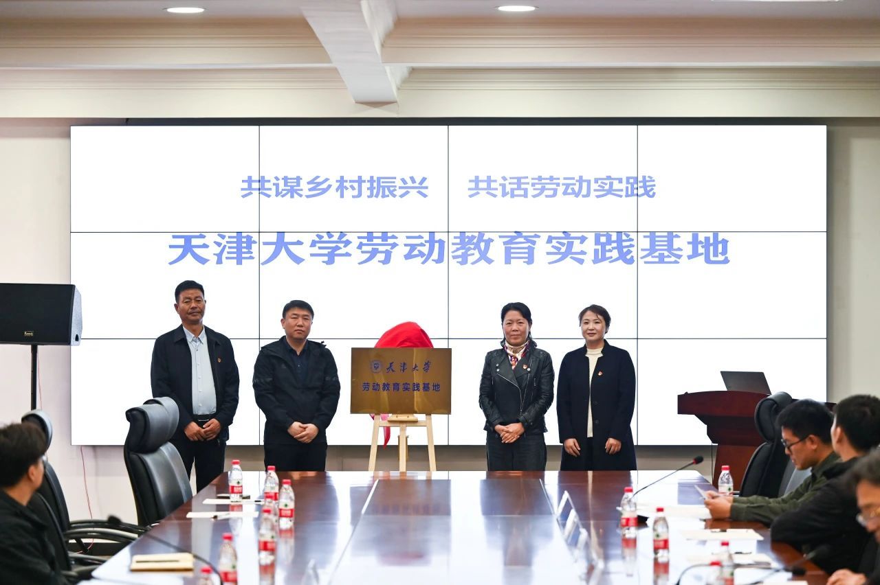 会上,天津大学首席辅导员冯翠玲、校团委书记李一昂、学工部副部长李京霖、建筑学院副院长曾鹏分别为“天津大学乡村振兴学生实践基地”、“天津大学劳动教育实践基地”揭牌。学工部部长、学工部第一党支部书记赵欣代表支部与第六埠村党支部签订联建协议。