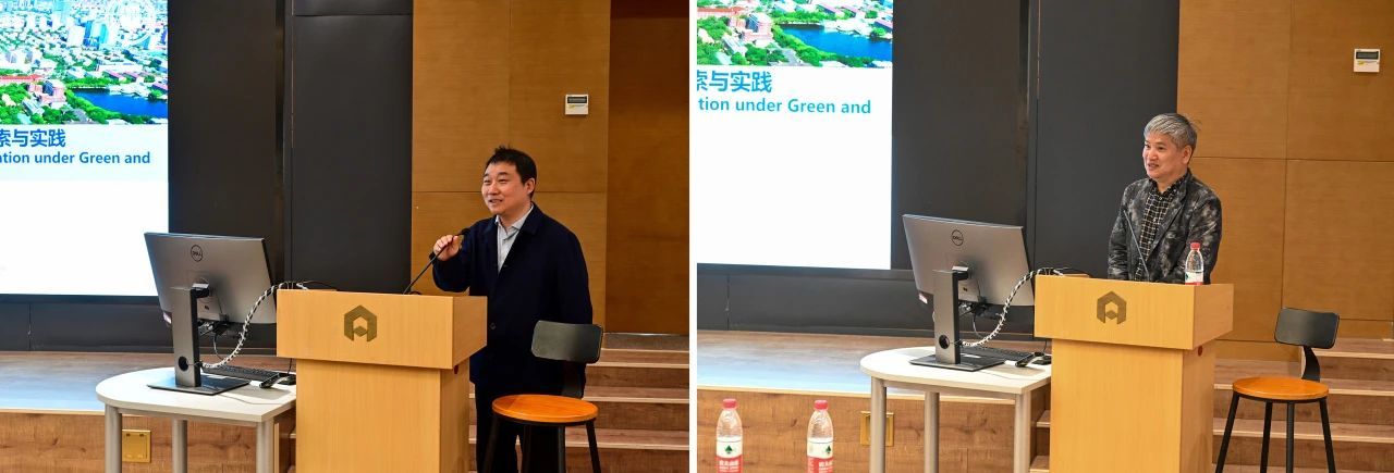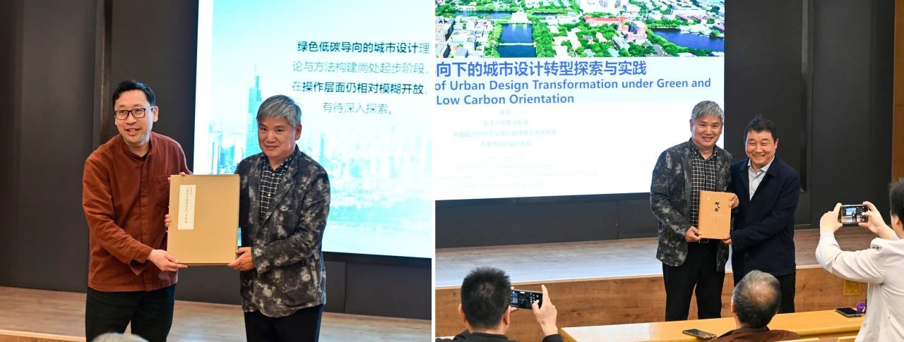 右:陈天教授做《绿色低碳导向下的城市设计探索与实践》报告现场