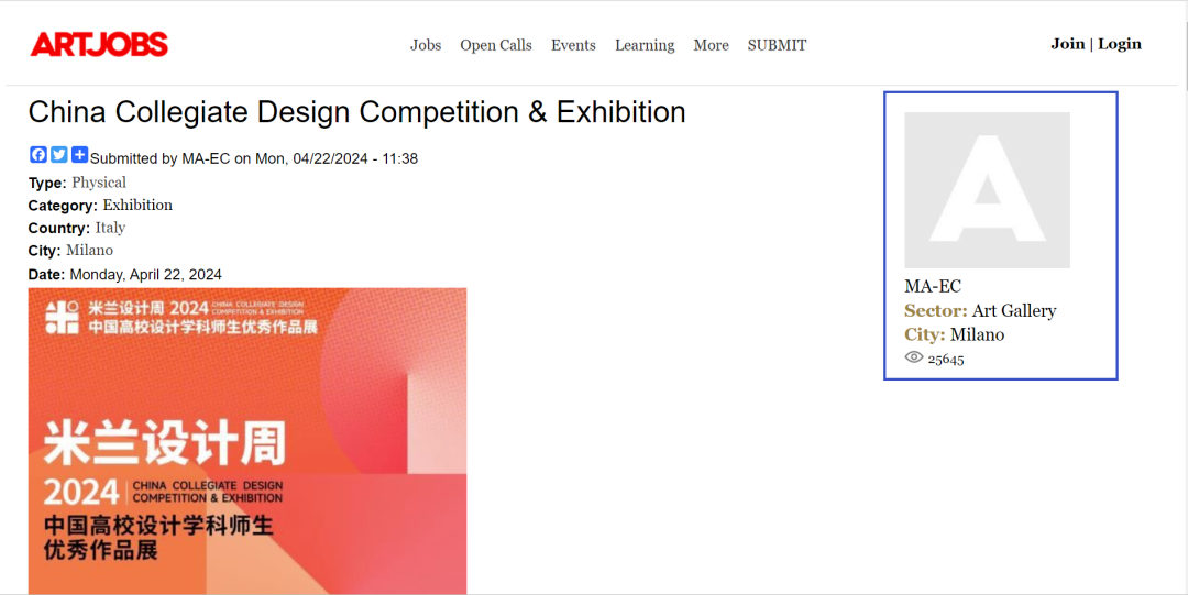 米兰国际家具展(Salone del Mobile.Milano),公认的世界三大家具展之一,被誉为世界家具设计及展示的“奥斯卡”与“奥林匹克”盛会。米兰设计周-中国高校设计学科师生优秀作品展(Milan Design Week China Collegiate Design Competition & Exhibition)由中国教育国际交流协会、中国高等教育学会于2016年发起主办,赛事旨在真实反映新时代背景下我国设计学科教学水平的现状和教学成果,为全国艺术学科师生搭建展示专业才华和创作水平的国际化交流学习平台。作为《高校艺术学科师生海外学习计划》平台化转型的服务项目之一,迄今已成功举办7届,总计收到全国1000多所高校师生报名作品22万余件,其中在米兰展出优秀作品1200余件,有效支持国内外院校共享和对比教学成果,积极推动我国高等艺术教育的交流与进步。