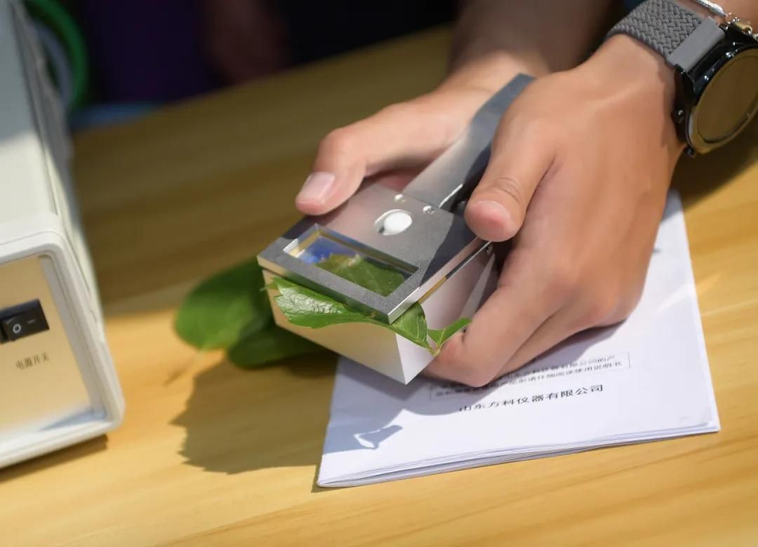 低碳科普大使为同学们进一步展示了团队日常调研过程中的专业仪器“光合作用测定仪”的工作原理并现场演示了仪器的测量过程。同学们积极踊跃地将自己的标本放到仪器上观察仪表盘的读数过程,并比较了几种常见园林植物的光合速率大小。