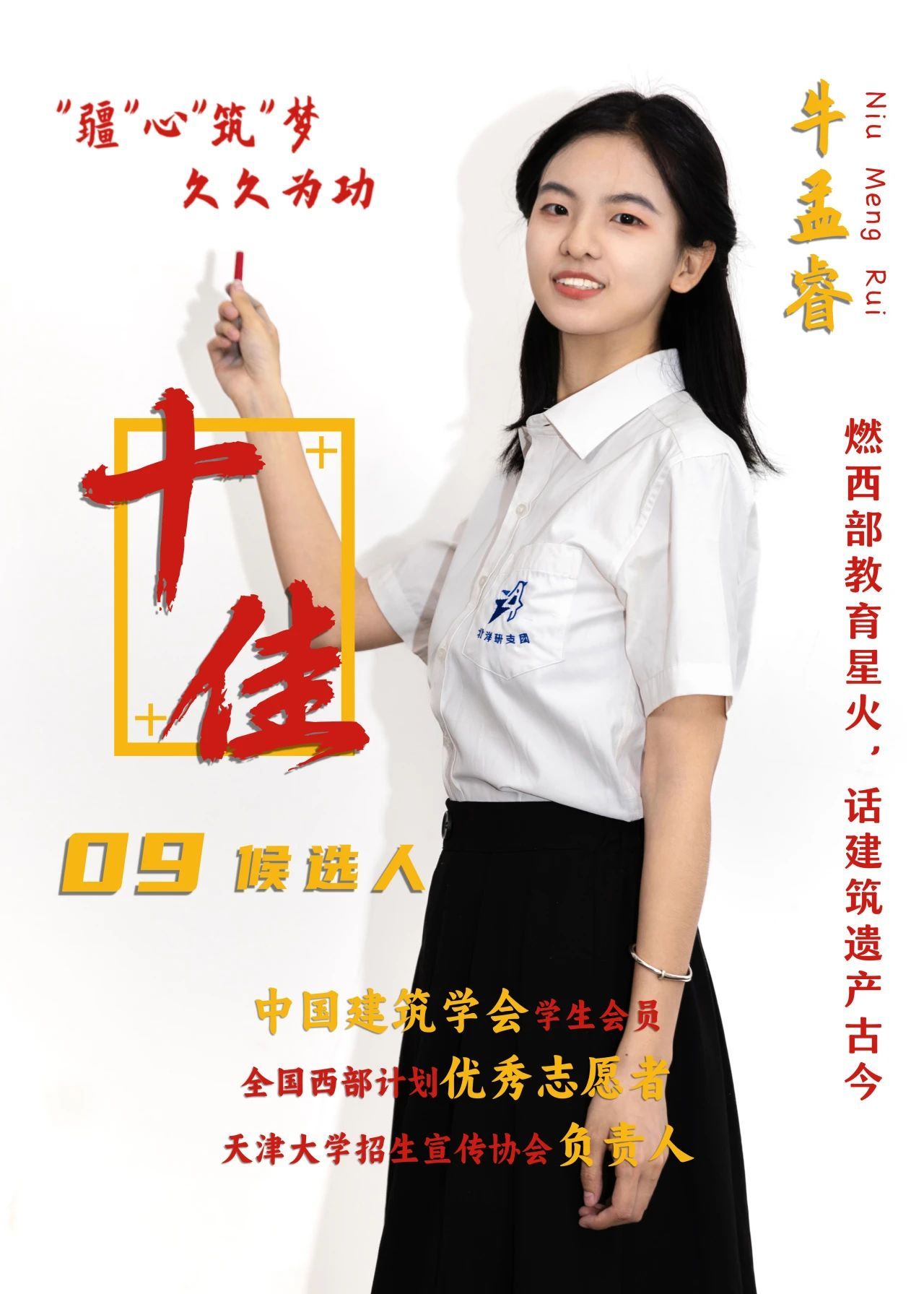 5月10日,天津大学第三十届“十佳杰出青年(学生)”评选活动落下帷幕,我院2023级硕士生牛孟睿荣获