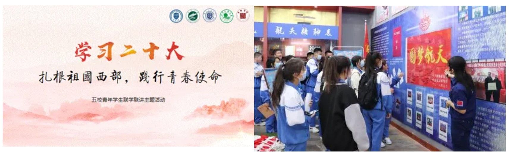 以学铸魂,联合宁夏大学等四所高校组建“学习二十大,践行青春使命”宣讲团为西部五省上千名学生联学联讲,将学报告、学讲话、讲四史、讲事迹与青年个人行动紧密结合起来。