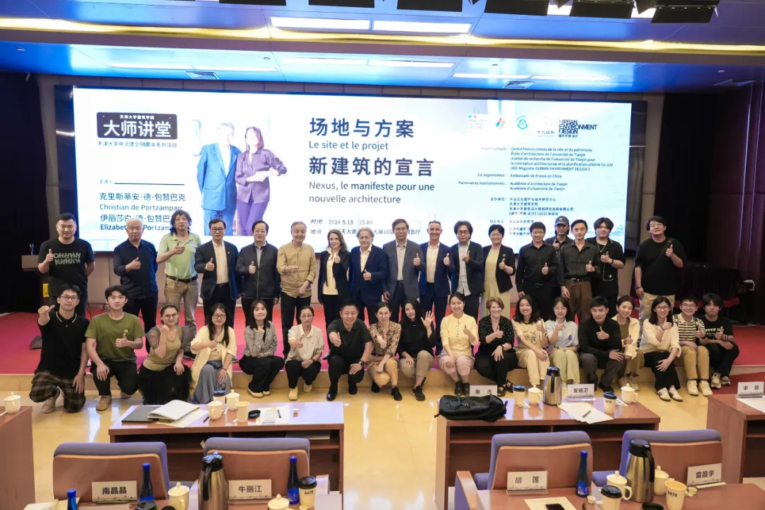 2024年5月13日下午15:00,由中法文化遗产与城市研究中心、天津大学建筑学院、天津大学建筑设计规划研究总院有限公司和《城市 环境 设计》(UED)杂志社联合主办的天津大学中法建交60周年系列活动+大师讲堂主题为“场地与方案”“新建筑的宣言”的讲座在1895天大建筑创意大厦10层国际报告厅顺利召开。