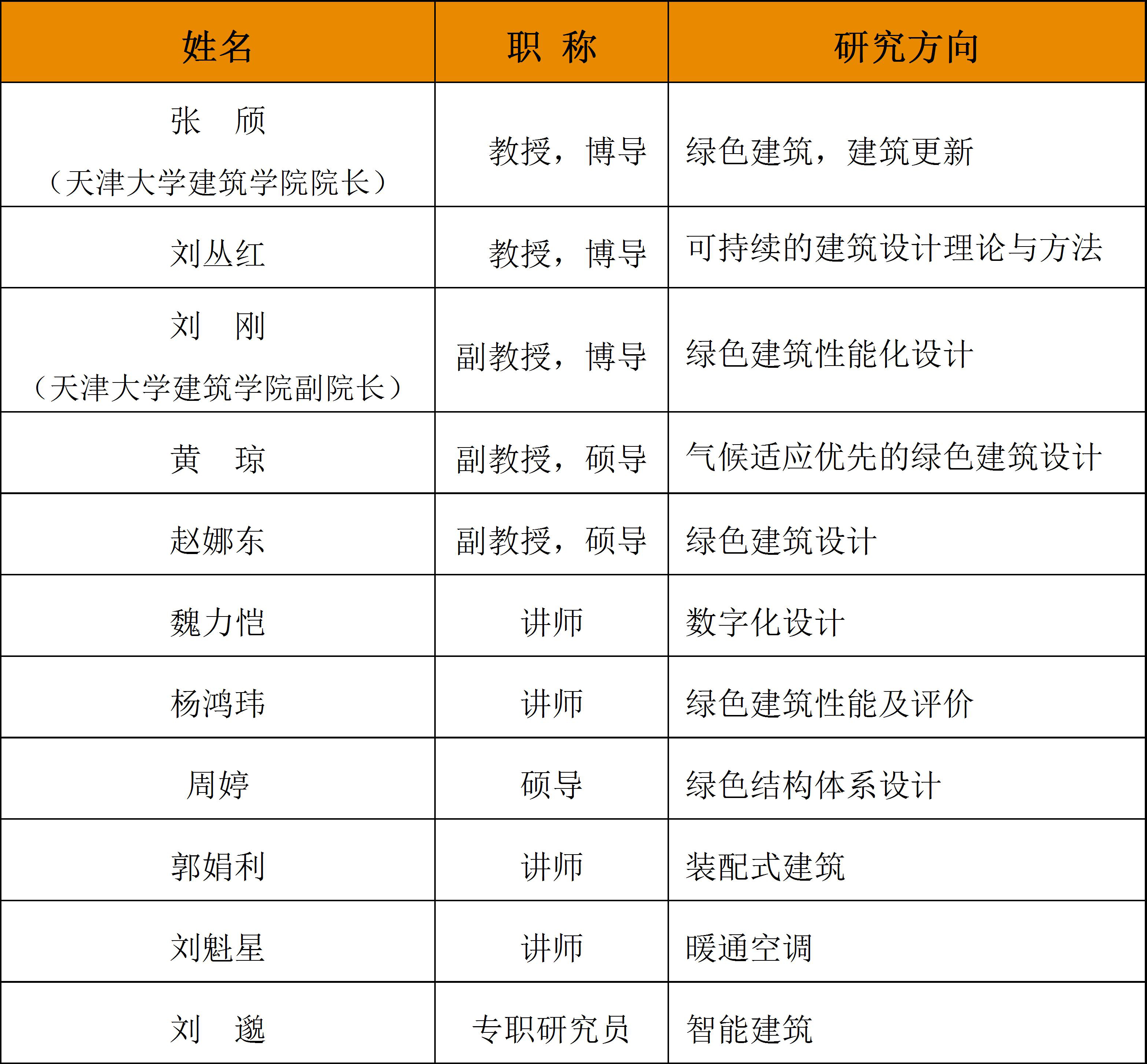 绿色建筑设计研究团队依托天津大学建筑学院的五大国际及国家级设计科研平台,包括国家低碳城市与绿色建筑引智基地、国际低碳建筑中心(中英香港澳大利亚共建)、天津市建筑物理环境与生态技术重点实验室、天津市旧城区改造生态化技术工程中心、天津大学建筑环境实验室,在绿色低能耗建筑空间设计、绿色建筑设计方法和流程、气候适应性优先的被动式节能设计、主动节能设计策略和技术、低能耗建筑空间设计与技术整合策略、建筑性能分析和参数化设计、数字化协同设计平台等多个领域,力图通过相关学科的理论交叉与技术融合,形成全生命周期绿色建筑研究链。