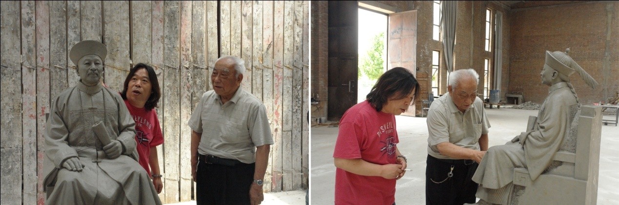 【彭一刚院士赴京指导盛宣怀雕像制作】2015年5月21日我院彭一刚院士冒着酷暑来到北京怀柔县某艺术工作室,观看了盛宣怀雕像的制作情况,彭先生对雕像的整体制作表示满意,并对雕像的细节处理提出了一些改进意见。据悉,该雕像制作完成后,将坐落于天津大学新校区。(李长清 供稿)