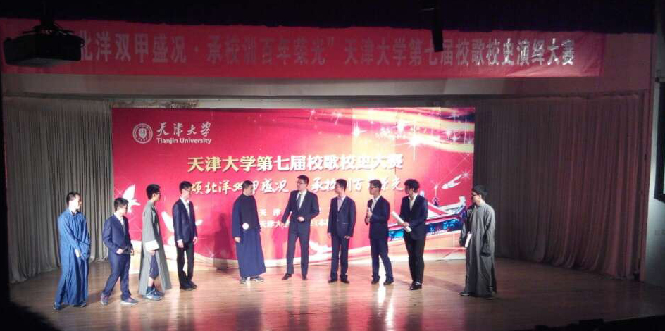 【建筑学院2014级本科生获第七届校歌校史演绎大赛三等奖】5月23日下午,天津大学第七届校歌校史演绎大赛决赛在大活报告厅举行。由建筑学院2014级本科生组成的队伍,获得校歌校史演绎大赛三等奖。根据抽签,建院学子抽到“留学先河——丁家立”部分。几位同学克服设计周交图困难,坚持排练,将北洋首任总教习丁家立先生的事迹展现的淋漓尽致。最后一段《少年中国说》,将整个表演推向高潮。经过评委打分,最终建筑学院获得三等奖的优异成绩。(张建斌 供稿)