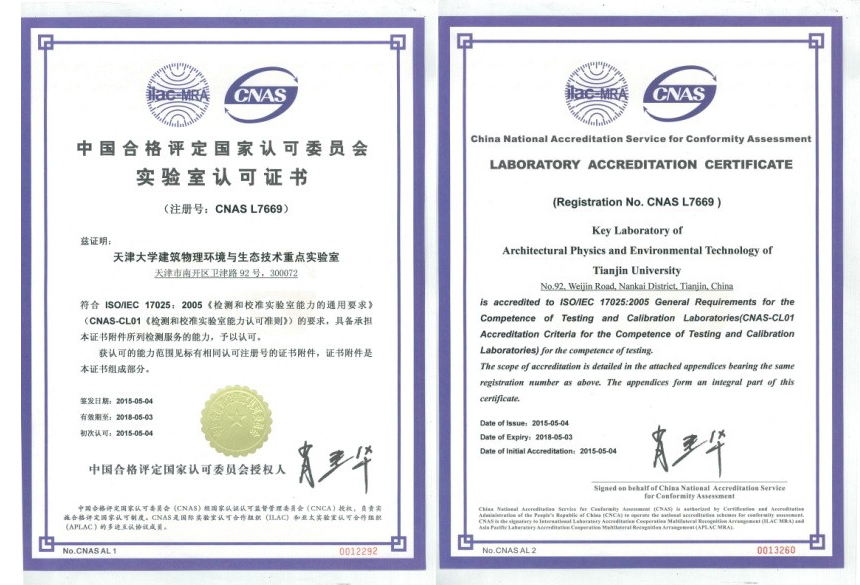 2. 天津大学建筑物理环境与生态技术重点实验室正式获批CNAS认可资格