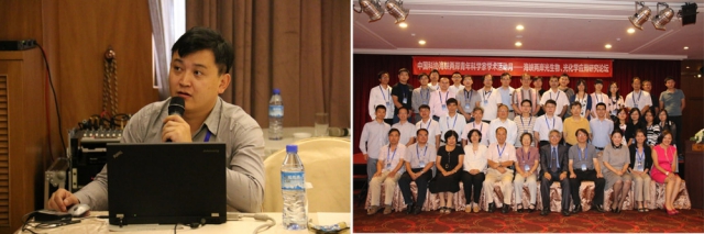 (左)张明宇副教授作报告,(右)论坛代表合影