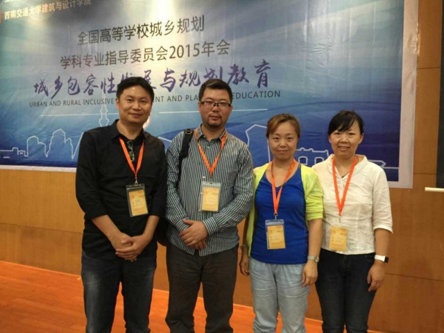 【2015年全国高等学校城乡规划学科专业指导委员会年会隆重召开】9月23-26日,由全国高等学校城乡规划学科专业指导委员会(以下简称专指委)主办、西南交通大学建筑与设计学院承办的2015年全国高等学院城乡规划学科专业指导委员会年会在西南交通大学隆重召开。我院城乡规划系教师曾鹏、许熙巍、滕夙宏、蹇庆鸣参会,其中滕夙宏老师还作为分论坛发言人进行了演讲。本届年会的主题为“城乡包容性发展与规划教育”。500多名教师、学者、专家围绕学科建设、理论教学、实践教学、教学方法、教学创新、城市多价值体系等议题展开深入探讨。随后,进行了一年一度的城乡规划专业本科生课程作业(规划设计、调查报告、特别竞赛单元)交流评优、城乡规划专业教师教学研讨及相关论文征集和城乡规划专业教师教学创新展览。最终,我院侯鑫、滕夙宏两位老师荣获优秀教学研究论文。我院城乡规划系学生共获得7各奖项,分别获得城市设计竞赛二等奖两项,佳作奖一项;交通实践创新竞赛三等奖一项;社会调研报告竞赛佳作奖三项。(城乡规划系 供稿)