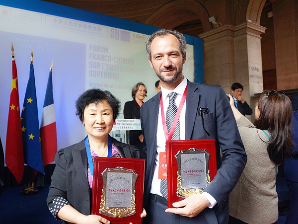 冯校长与波尔多建筑景观学校校长Martin Chenot领奖并合影