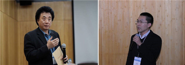 张颀院长主持寒地建筑教育专题座谈(左), 党睿副教授作报告(右)