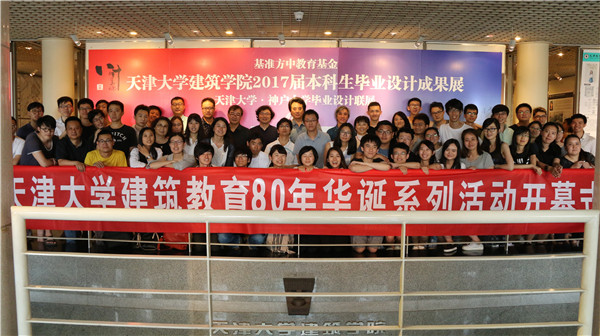 天津大学建筑教育80华诞Logo 【“承前志 启后新”,天津大学建筑教育80周年华诞系列活动开幕】 2017年6月15日下午,“天津大学建筑教育80华诞系列活动开幕仪式——暨‘基准方中教育基金’天津大学建筑学院2017届(建筑学专业)本科生毕业设计成果展、天津大学·神户大学毕业设计联展”在天津大学建筑学院二层中庭举行。