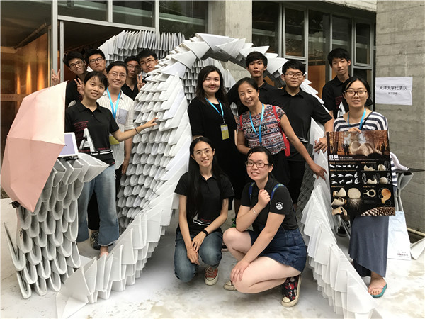 参会嘉宾合影 师生获奖 【我院团队获2017同济建造节竞赛一等奖】 2017年6月10日,伴着疾风骤雨,一年一度的同济建造节在同济大学建筑与城市规划学院如期举行。我校派出的由十名学生组成的参赛队伍在四位带队教师的指导下,经过数个小时的奋战,终于完成了设计作品“羽巢”的搭建,并夺得了同济建造节竞赛一等奖。 天大代表队与作品合影 【一年级教学组师生在2017第二届北京建造节中取得佳绩】 2017年6月3日-6月9日,由中国建筑学会、北京交通大学联合主办的2017第二届北京建造节在北京交通大学举办。本次建造节以“理木·知筑”为主题,以木材、竹材为主要材料,共有来自京津冀地区15所高校及中学共计47组学生组队参加。