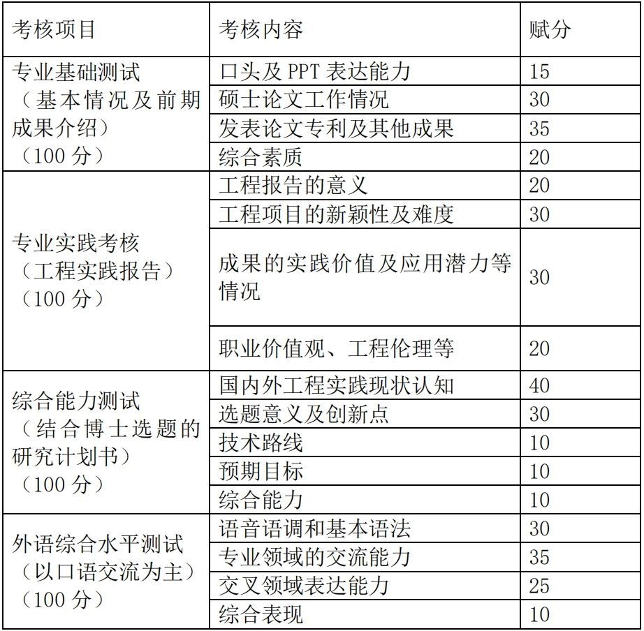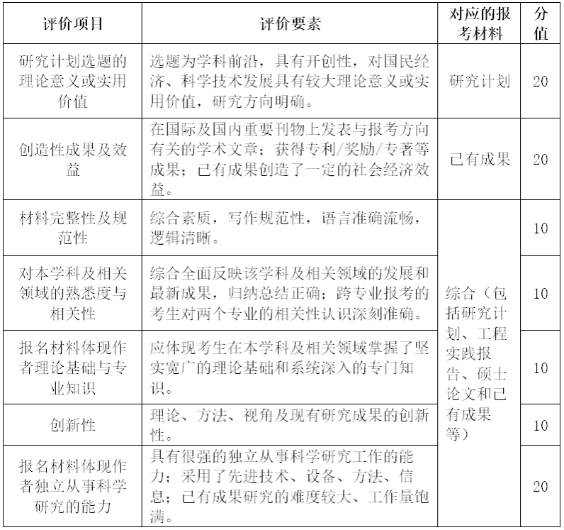 学院将组织专家组对申请材料初审合格的申请人进行综合考核。考核项目包括专业基础测试、专业实践考核、综合能力测试和外语综合水平测试四部分内容。各科成绩满分为100分。